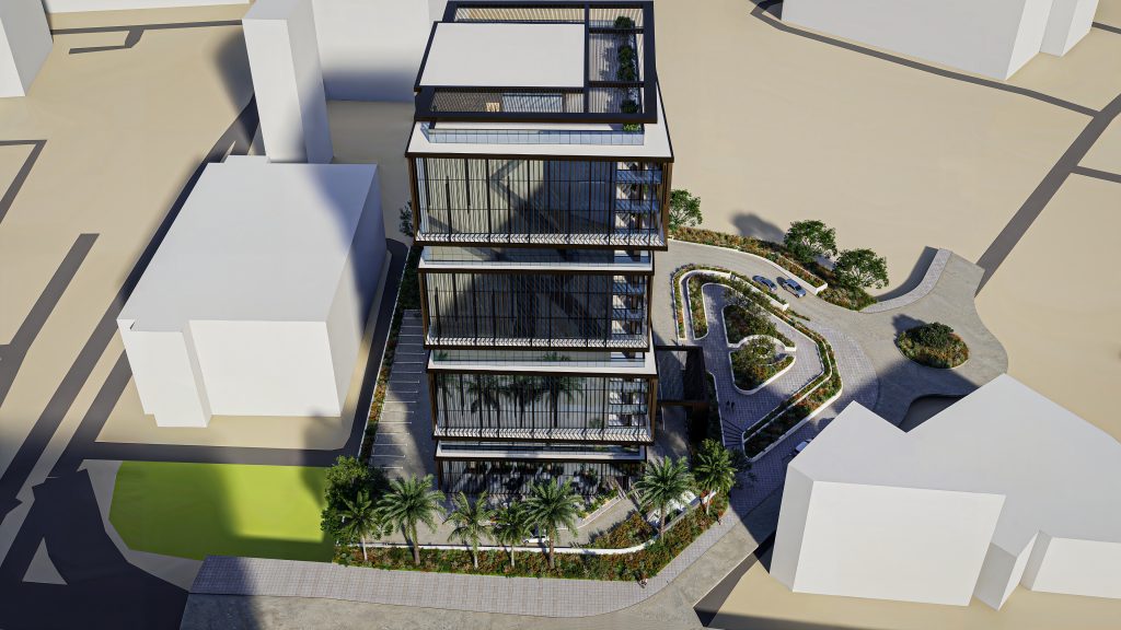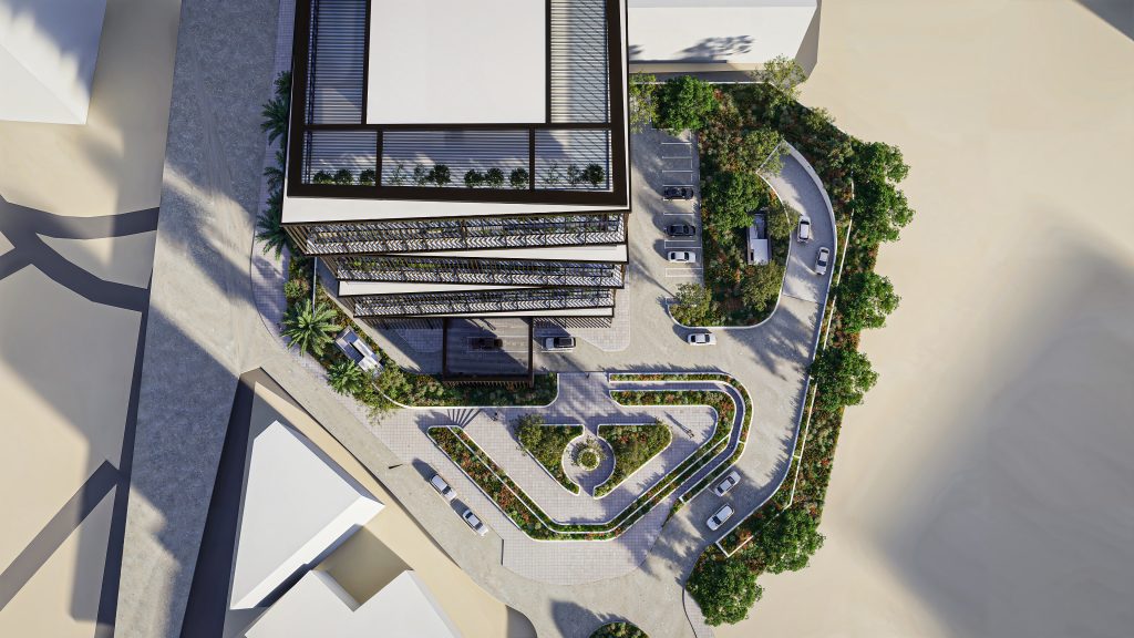 Views & Safety Floor-to-ceiling panoramic windows in every office frame inspiring views of the Mediterranean Sea and the dynamic cityscape of Limassol—a hub with ever-growing investment appeal. Safety and logistics were prioritized during the design phase: the building features a non-intersecting circular flow scheme, allowing for natural and comfortable social distancing within the common areas.